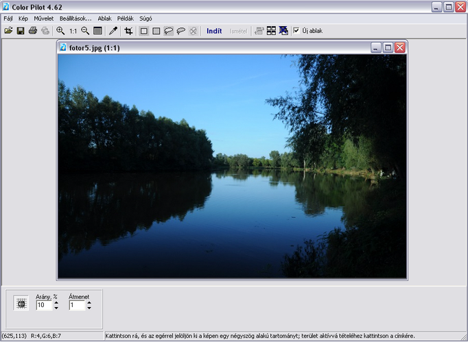 Adatlap: néhány információ a megnyitott képről (mérete, felbontása, stb.)