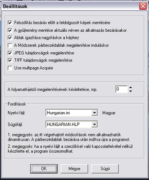 A program működésére vonatkozó beállításokat találunk itt, valamint nyelvbeállítást.