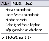 A megnyitott képek elrendezését, igazítását állíthatjuk be.