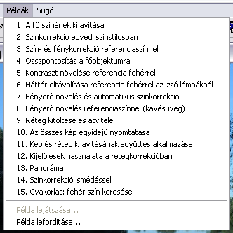 Ez a menüpont néhány, a program által megoldható feladatokat mutatja be nekünk. Így könnyebben elsajátíthatjuk azokat.