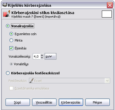Majd Szerkesztés/Kitöltés körberajzolása menüponttal hívjuk be a Kijelölés körberajzolása ablakot.